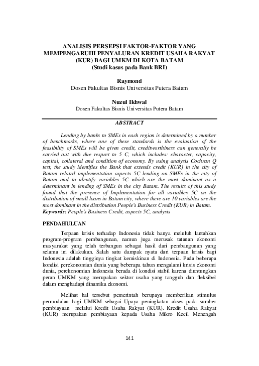 Kredit Usaha Rakyat Bank Rakyat Indonesia