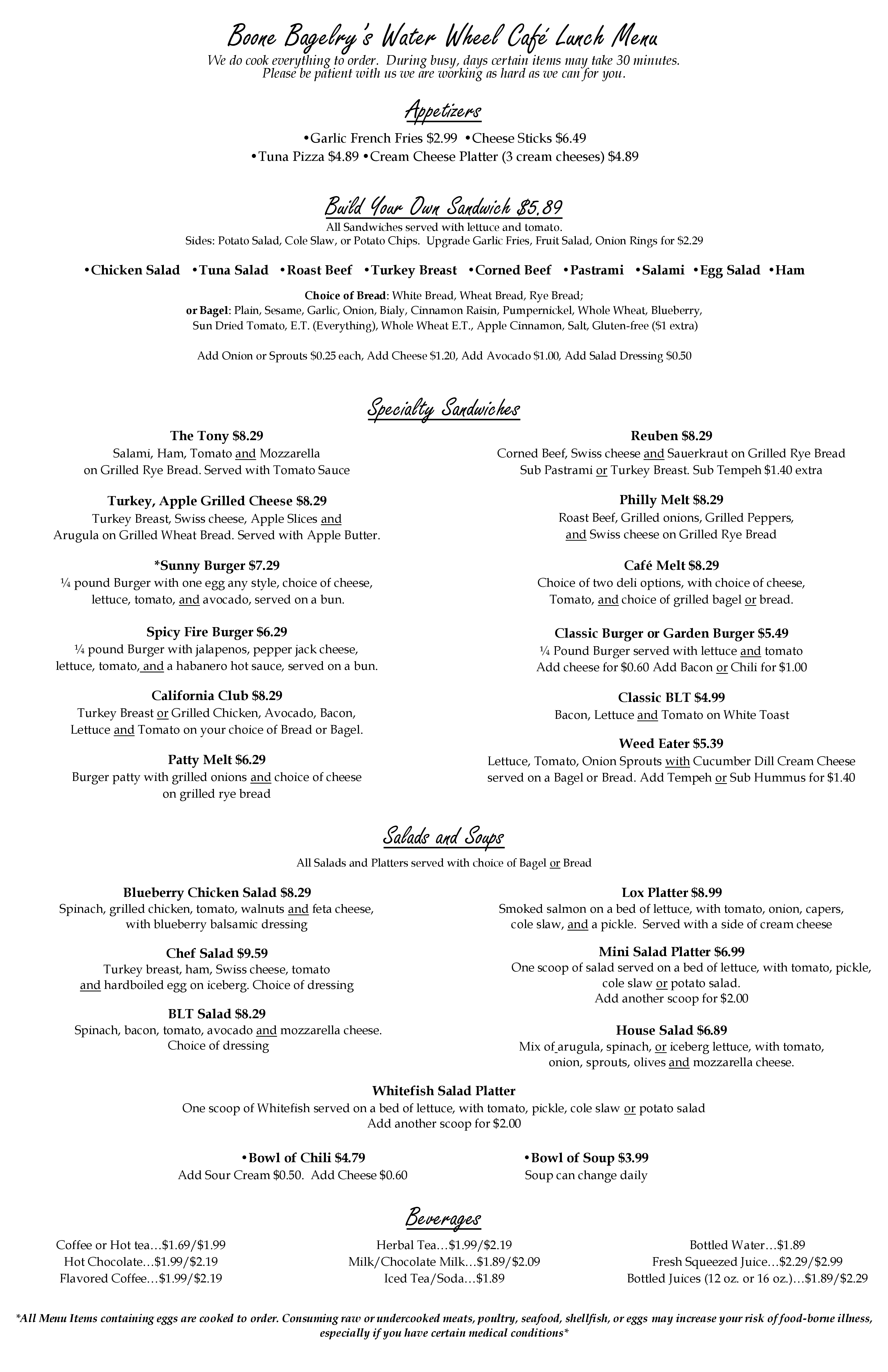 Beeteesdrivein Menu