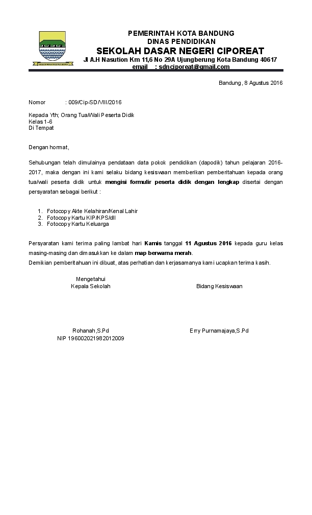 Contoh Formulir Pendaftaran Lomba Cerdas Cermat