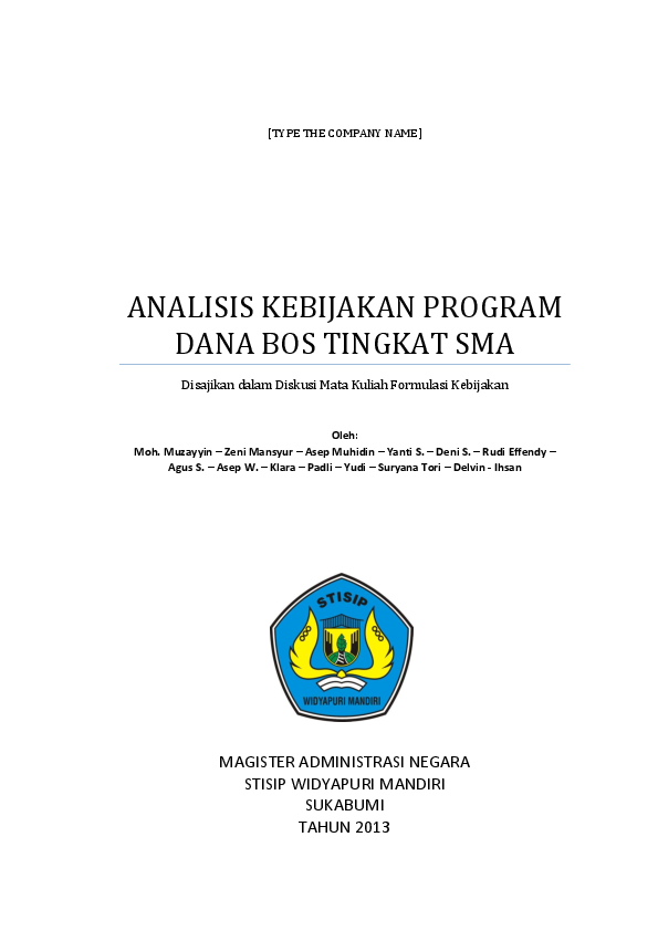 Doc Analisis Kebijakan Program Dana Bos Tingkat Sma Muhammad Muzayyin Academia Edu