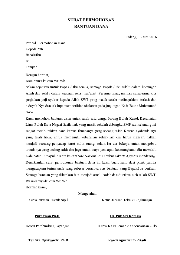 Doc Contoh Surat Permohonan Bantuan Dana Wildan Pratama Academia Edu